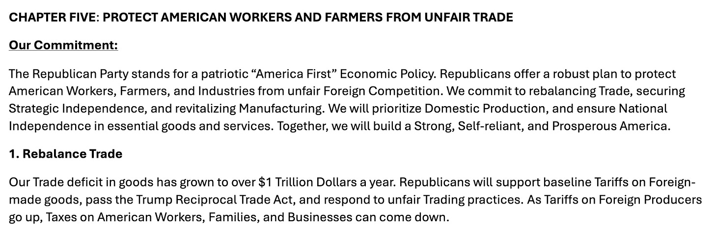 This is obviously, wildly untrue. Trade policy was a key feature of Trump’s Agenda 47. From the campaign website we see: