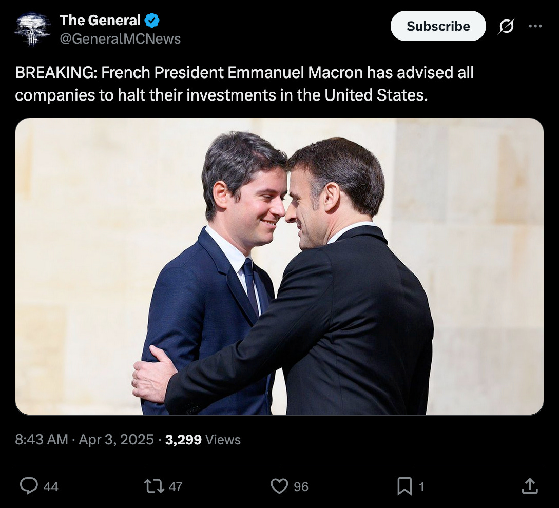 Israel tried to frontrun the tariffs, obviously having foreknowledge about the schedule going into place, by waving all tariffs against America the day before Liberation Day: