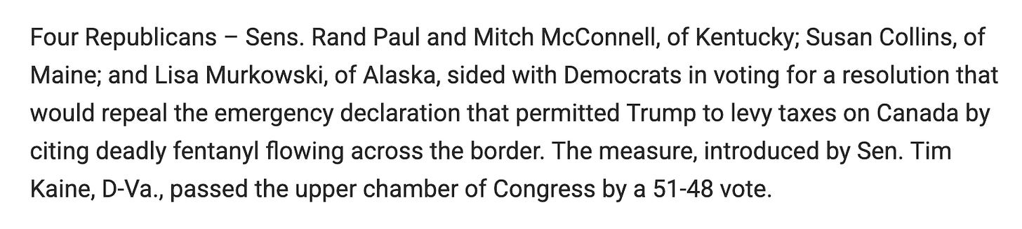 Rand Paul and the three worst Republican Senators in Congress responded by helping out the Democrats: