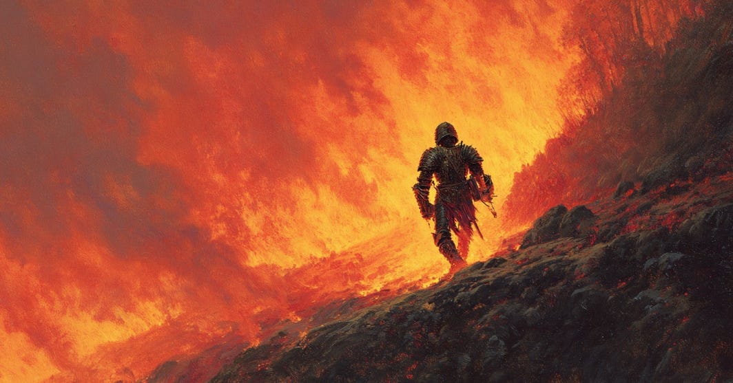 If you keep walking toward the fire, whatever that is for you in your life, you can be assured there will be strenuous challenge involved. But what else is there to do? If you don’t do what you were put here on this Earth to do, you will fall into despair. If you cannot spread virtue in this life, you are a net drain to everyone and your conscience will torment you - even if the power structure rewards you amply.